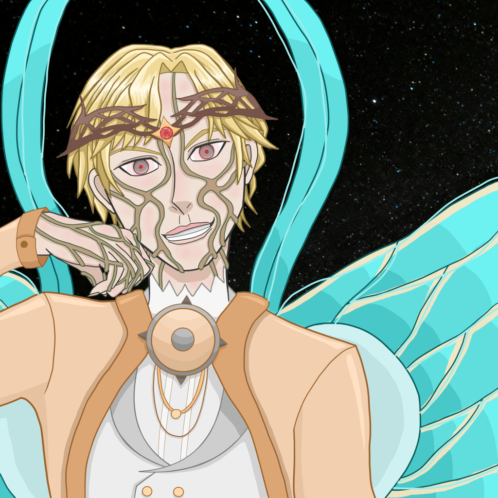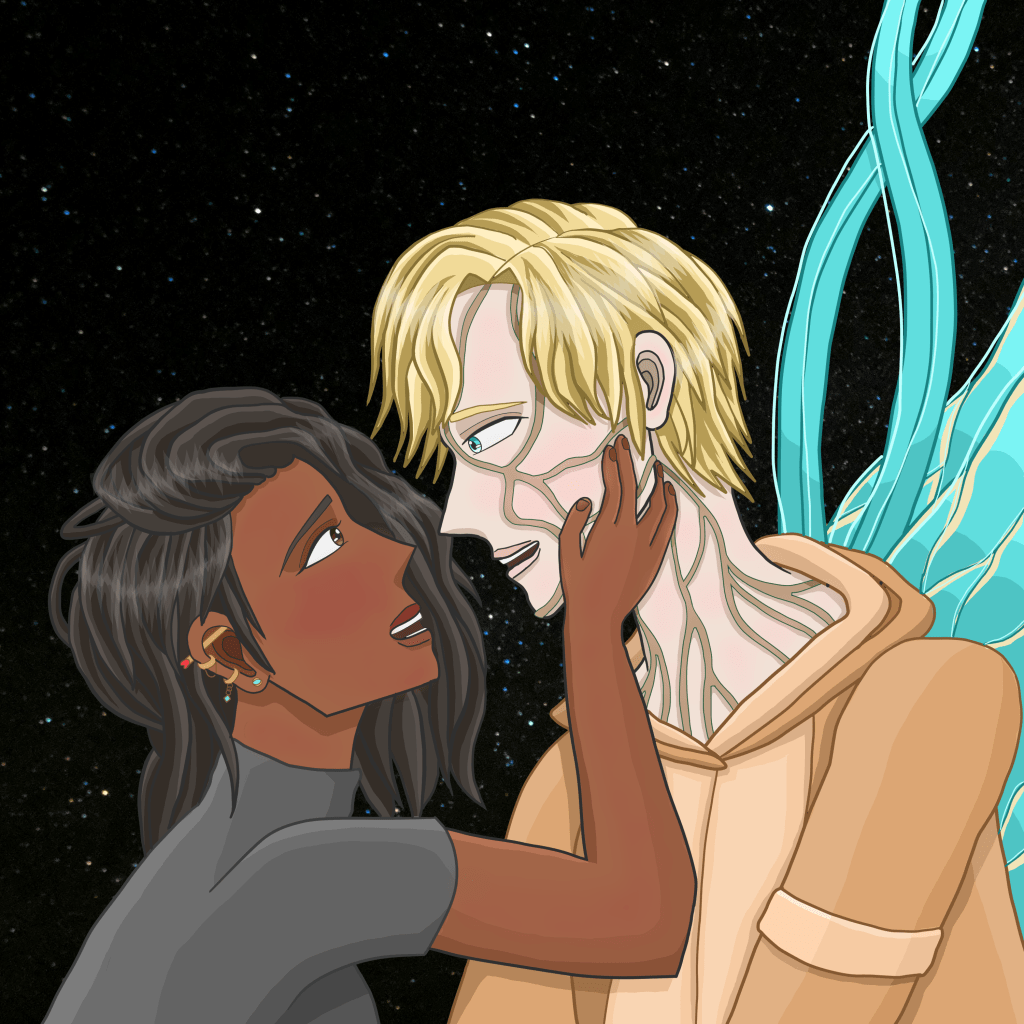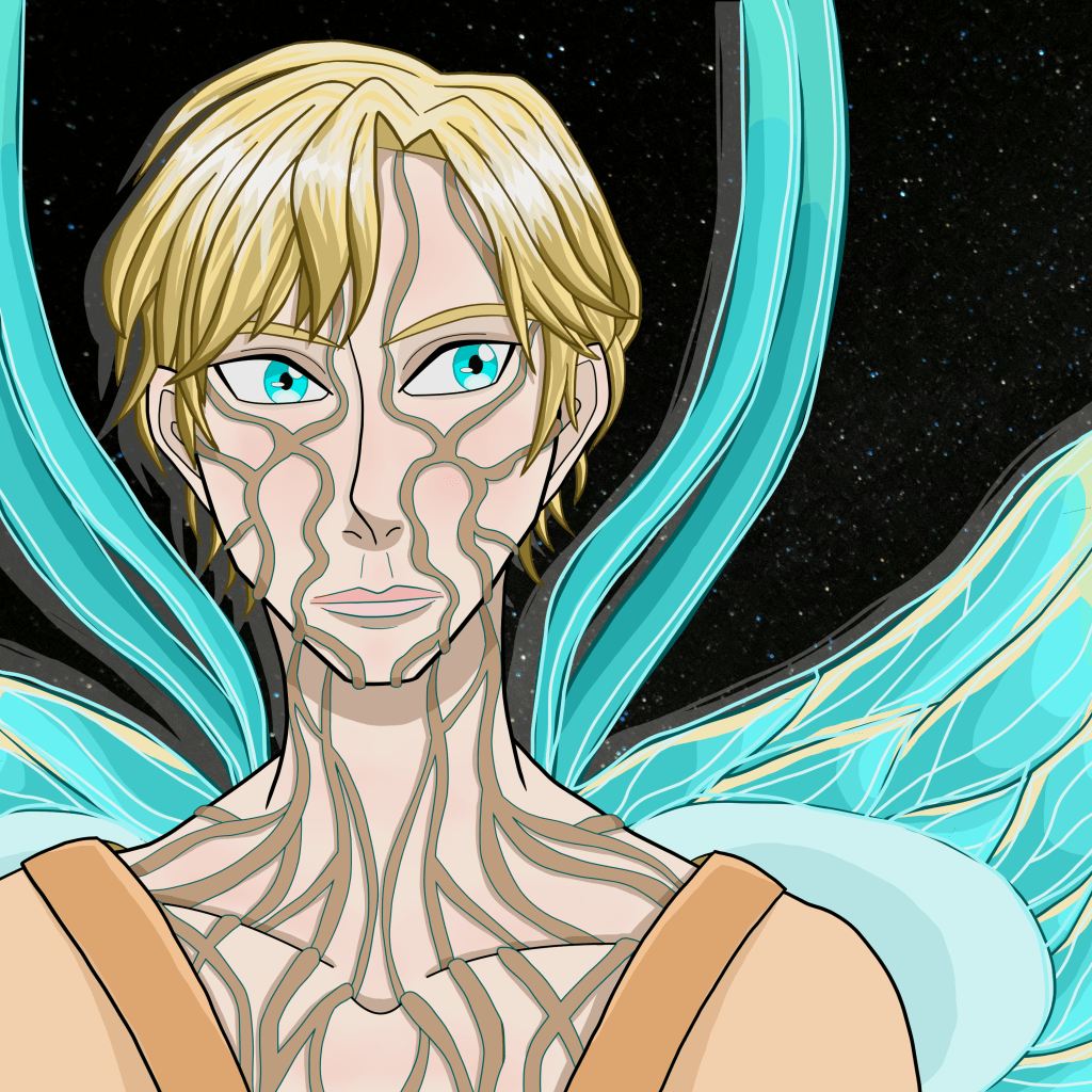 Then, with piercing eyes the same color as his wings, he makes eye-contact with them. “Relax, you can drop the human disguises now. They’re all gone, and they’re never coming back. This planet is ours’ once again.”