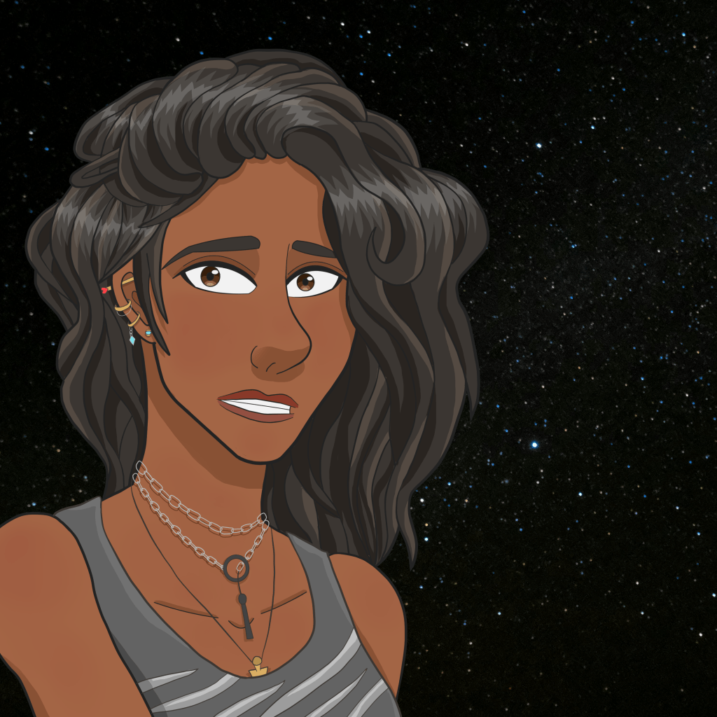 It makes its way across the road, traipsing through the chaos as if it knew this was going to happen. As it grows closer, Terra realizes it’s a man. A tall blonde man with what appears to be roots growing under his skin in place of veins. The brown roots are spread out from his feet all the way to his pale face, following the curves of his cheeks and the bridge of his nose. He wears a toga-like outfit, but these features aren’t even the most striking part about him.