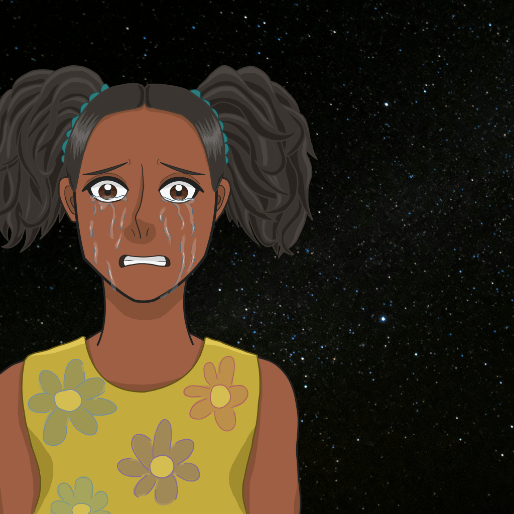 As the former university student walks the once bustling streets with her professor and little sister, she realizes the magnitude of the predicament they’re in. Only a few minutes ago, they were shopping. The professor was helping them pick out new clothes. Then, the lights went out. The deafening sound of flying cars and spaceships crashing to the ground rang through the mall hallway. The girls, panicking now, wanted to evacuate the building, but the professor wouldn’t let them. Instead, they hid under some mannequins and listened to the screams of other shoppers.